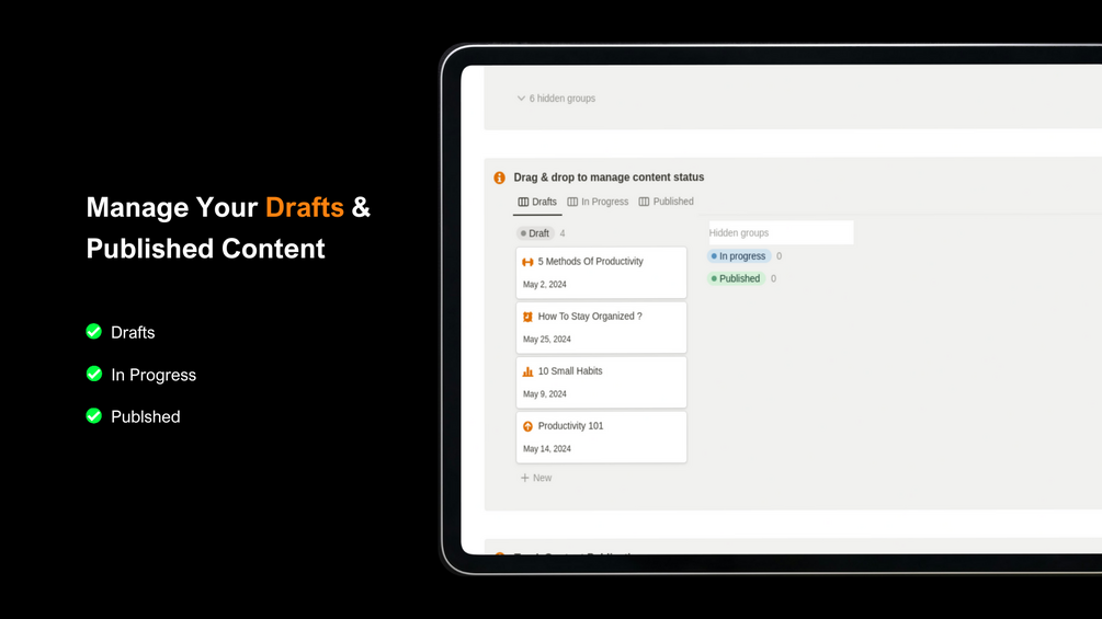 A typical SMMA freelancing agency charges $100 - $200/month at a minimum for managing your social media content. But, managing your social media by yourself leaves you no time to spend with the people you love, especially if you own multiple platforms. This template strikes the balance as the perfect investment, considering it costs just $19 to completely organize & manage your social media presence in a simple dashboard.